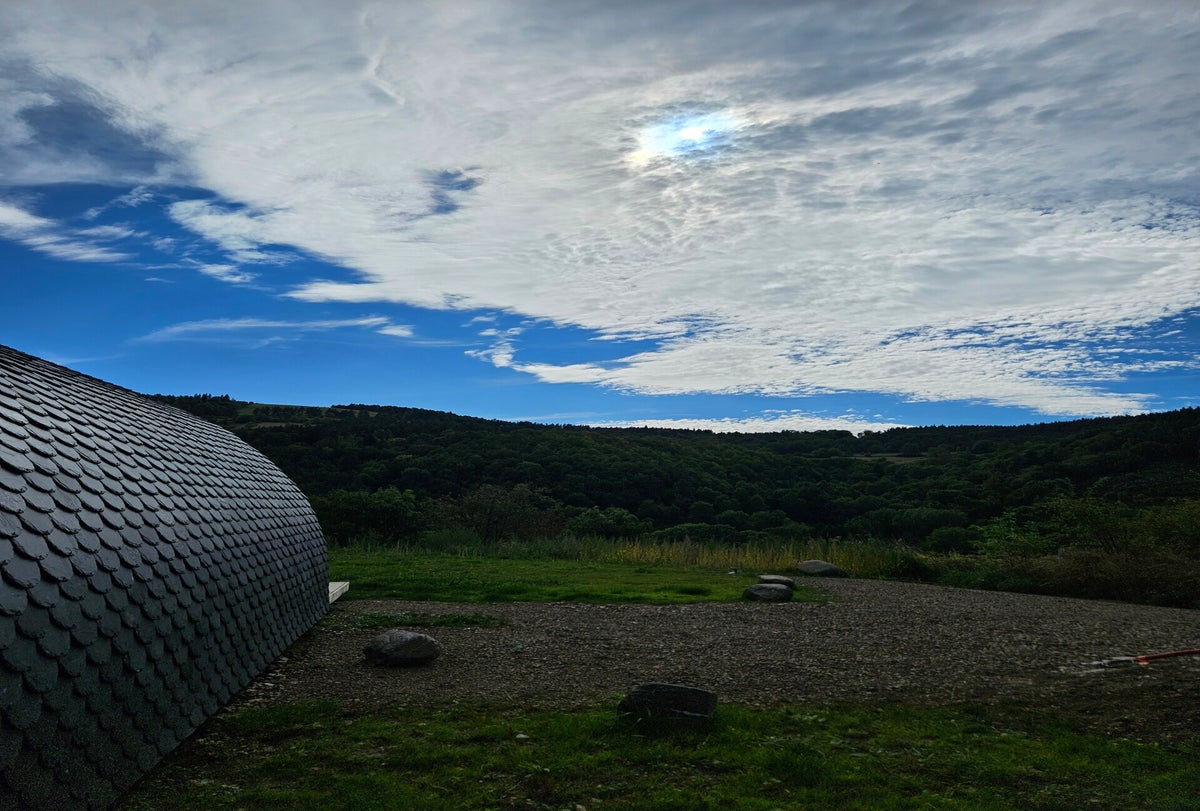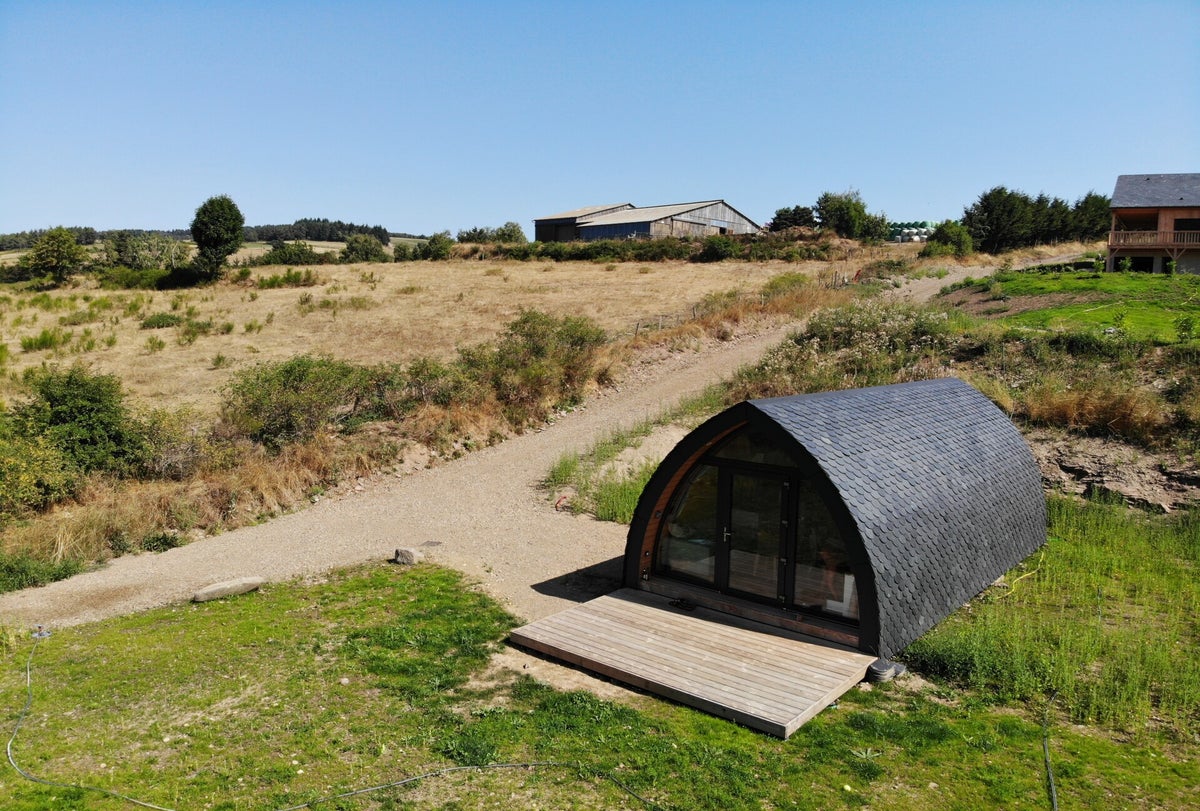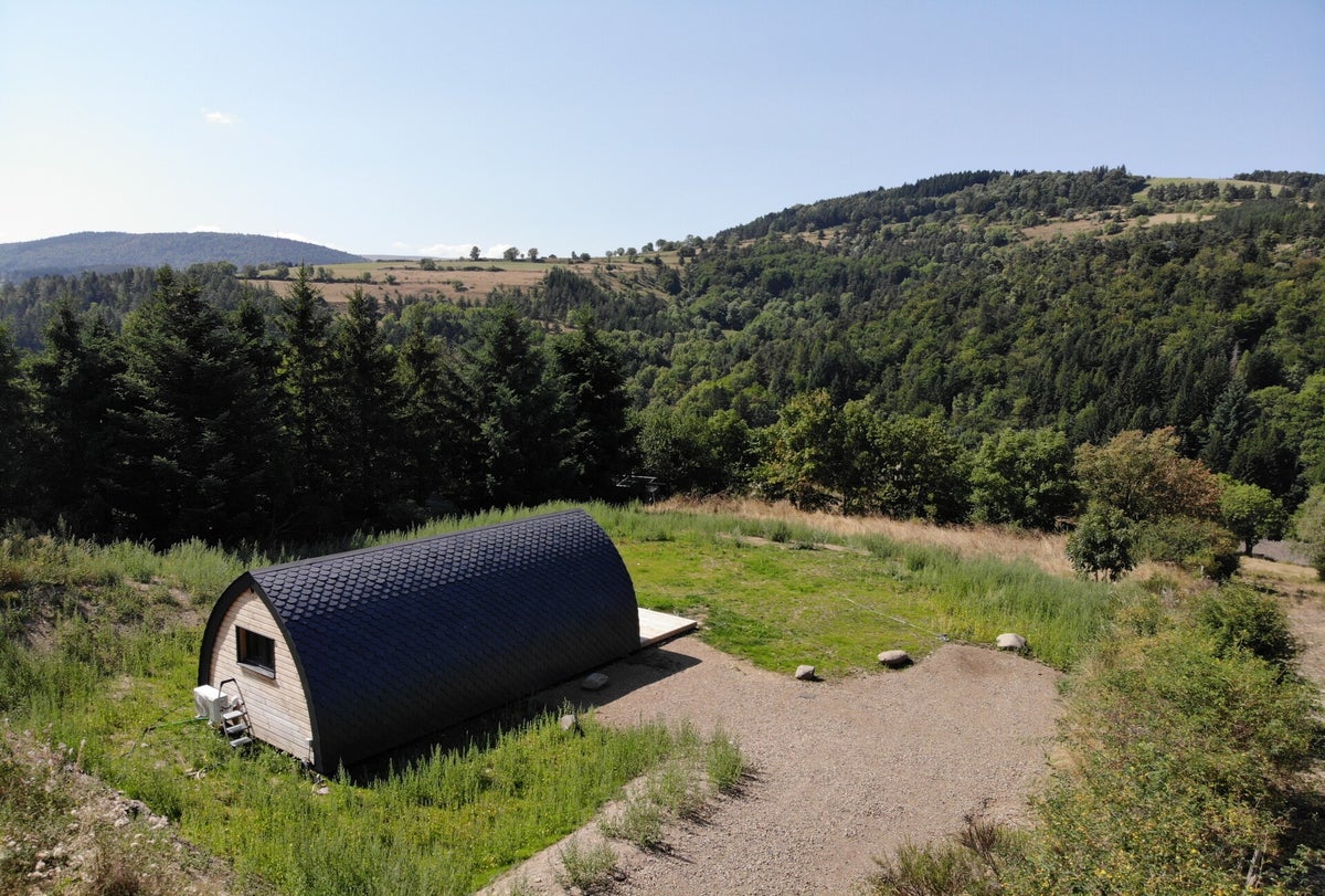 "Le Saint Jean" situé en haut de la parcelle, à l’écart de la route et au milieu des champs, il offre un environnement paisible, sans bruit de circulation, avec une vue dégagée sur la nature environnante. Comme les cabanes, il fait face à la forêt du Mont Lozère, offrant la même vue imprenable et apaisante.