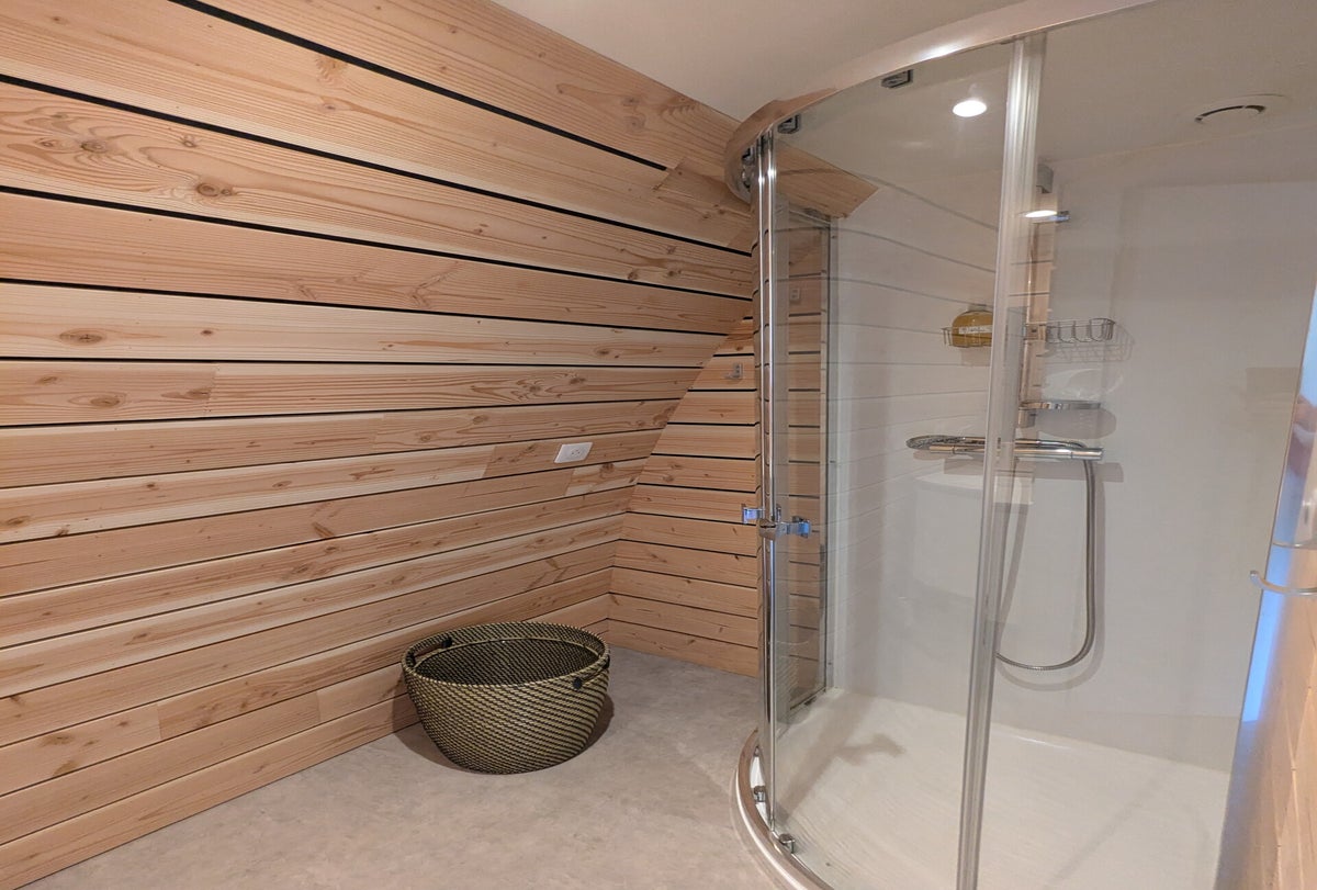 La cabane d’Antoine se trouve au cœur du terrain, avec un espace de stationnement juste à côté pour plus de praticité. Sa terrasse accueille deux transats et une table basse, parfaits pour savourer un café face à la montagne et à la forêt. Devant vous : un paysage grandiose, avec la forêt de sapins, épicéas et douglas d’un côté, et les champs ouverts à perte de vue de l’autre.